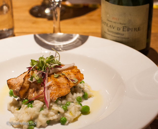 Salmon & spring pea risotto with a rich Savenierres (even better with the leftover Champagne!)