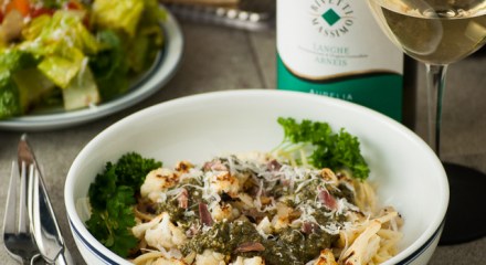 Anchovy Beet-Green Pesto Pasta & Arneis