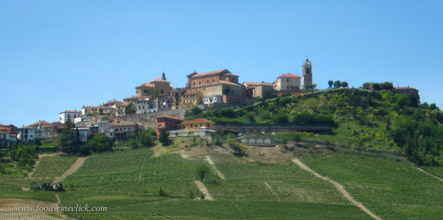 La Morra is a high point in the area, note the clock tower on the right. La Morra is easiest to recognize by a hill to the left full of ugly radio towers (not shown here)