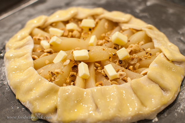 Wrap up the galette crust, add hazelnuts, a bit of butter and egg wash