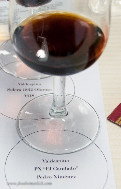 Pedro Ximénez (PX) – old, raisiny nose. Super ultra rich, sweet & smooth. Liquid fig newtons. A bit too much of a good thing for me.