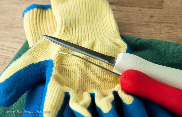 For $22, you can equip yourself with an oyster knife and a set of kevlar gloves. I like the “New Haven” style with the bent tip.
