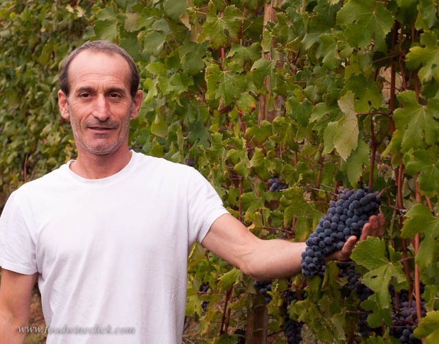 Franco holding a nearly ripe bunch of Nebbiolo grapes