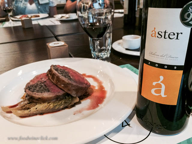 Lamb is a perfect meat for Ribera. The Aster was a “Crianza” wine, meaning it had been aged at least 2 yrs of which 12 months was in oak. This was a more mature wine with a bit more depth, perfect with the lamb.