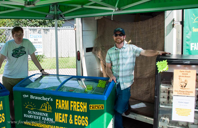 Brandon (sunglasses) and Mike, his dad (not shown here), run a modern family farm. They raise chickens, pigs & cattle. We love their pasture raised meats and eggs.