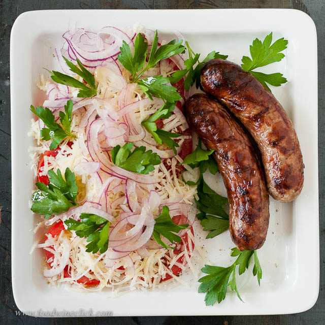 Drizzle with equal parts apple cider vinegar and extra virgin olive oil, add your brats and go for it!
