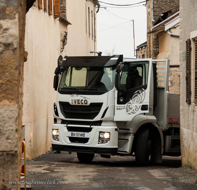 Tiny bourgogne towns present some driving challenges. That driver is NOT going to make that turn.
