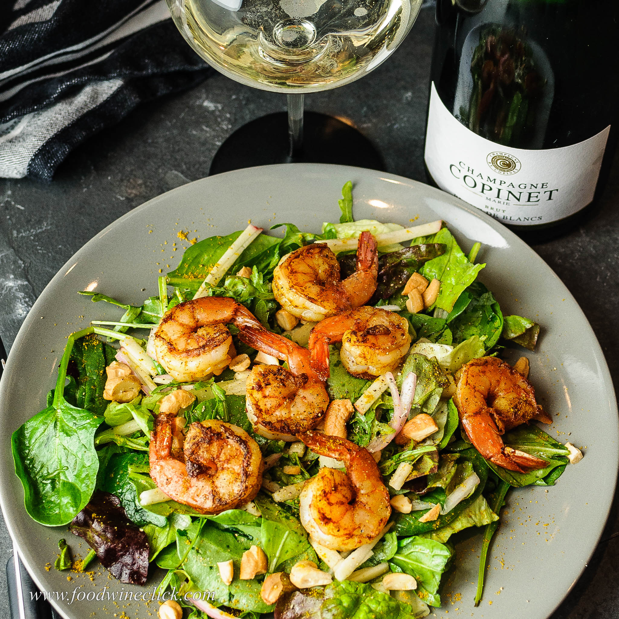 Billed as a winter salad, this curried shrimp salad would happily pair with Champagne any day of the year