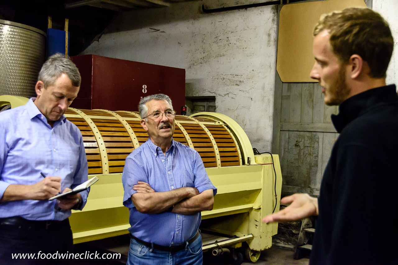 Raymond patiently answered all of Peter’s questions while I took notes. Notice the horizontal basket press behind us!