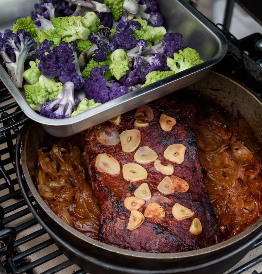 Near the end, cooking the veggies on the grill, too