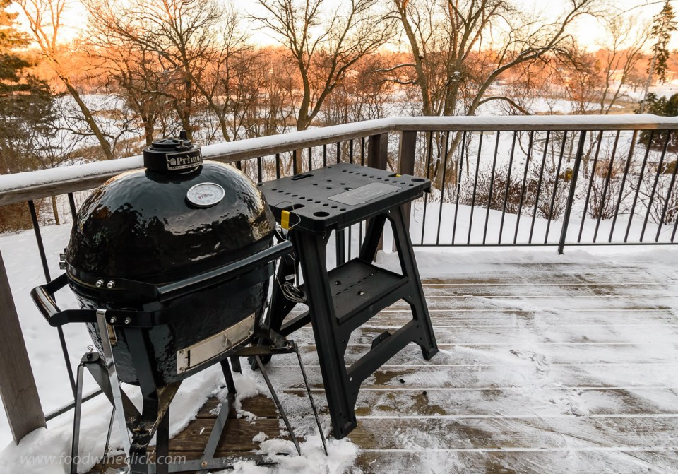 Reality of smoking in Minnesota in the winter: mid-day temperature 5 deg. F. I shoveled the snow off the deck in order to fire up the grill