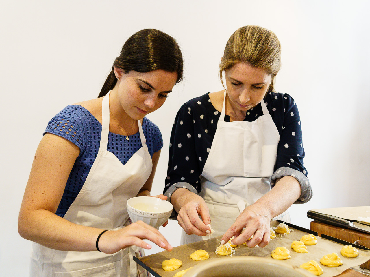 After piping the gougères, we topped them with a bit of egg and grated cheese