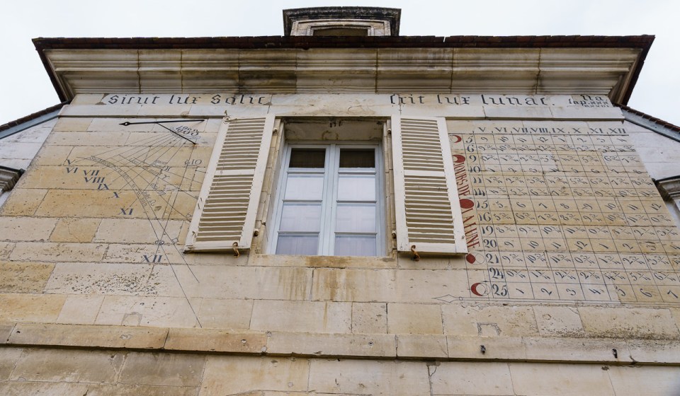 The sun and moon dial s date from the 16th century and seem appropriate for a estate pledged to biodynamic farming today