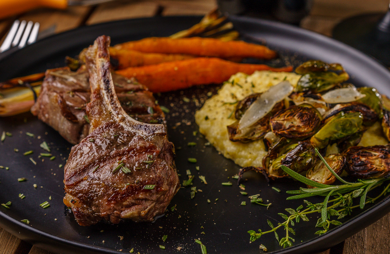 A little bit of forbidden perfection: lamb chops with grilled veggies on polenta