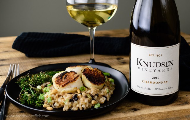 Knudsen Vineyards Chardonnay paired with seared scallops with farro "risotto"