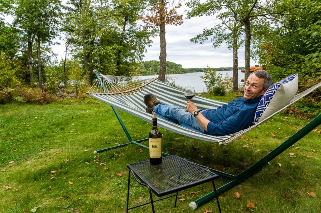 I’m thinking I need a glass of wine and it’s only 9:30 a.m. I’d love to have the hammock and lake in the background too!
