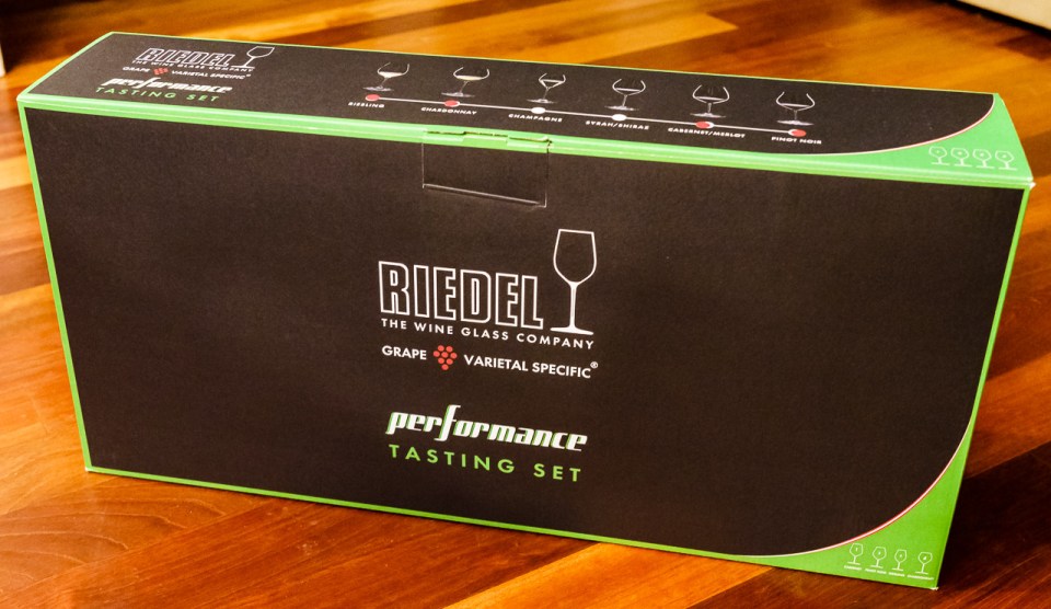 At the tasting, we received a set of 4 glasses: Riesling, Chardonnay, Pinot Noir, and Cabernet Sauvignon/Merlot. There are also Performance series glasses for Champagne and Syrah.