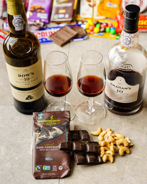 - Dark chocolate with > 80% cacao: bittersweet chocolate will be a nice surprise with the Tawny Porto. It’s not particularly nice by itself (intense chocolate flavor, but not very sweet). Shines with the sweetness in the Tawny Porto. Extra power boost? Serve your favorite roasted salted nuts to power up the combo. For me? Cashews. Bam!