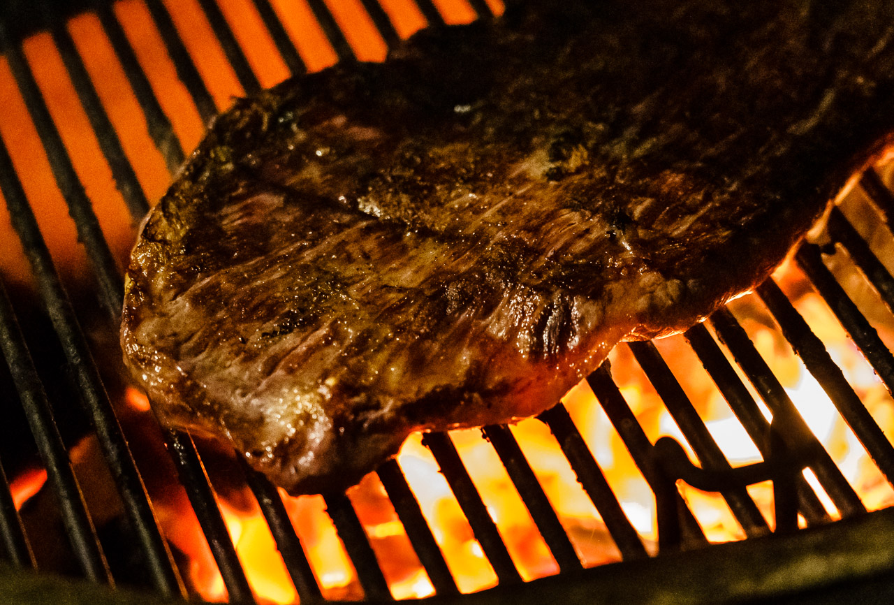 Flank steak cooks quickly, so be sure to watch closely.