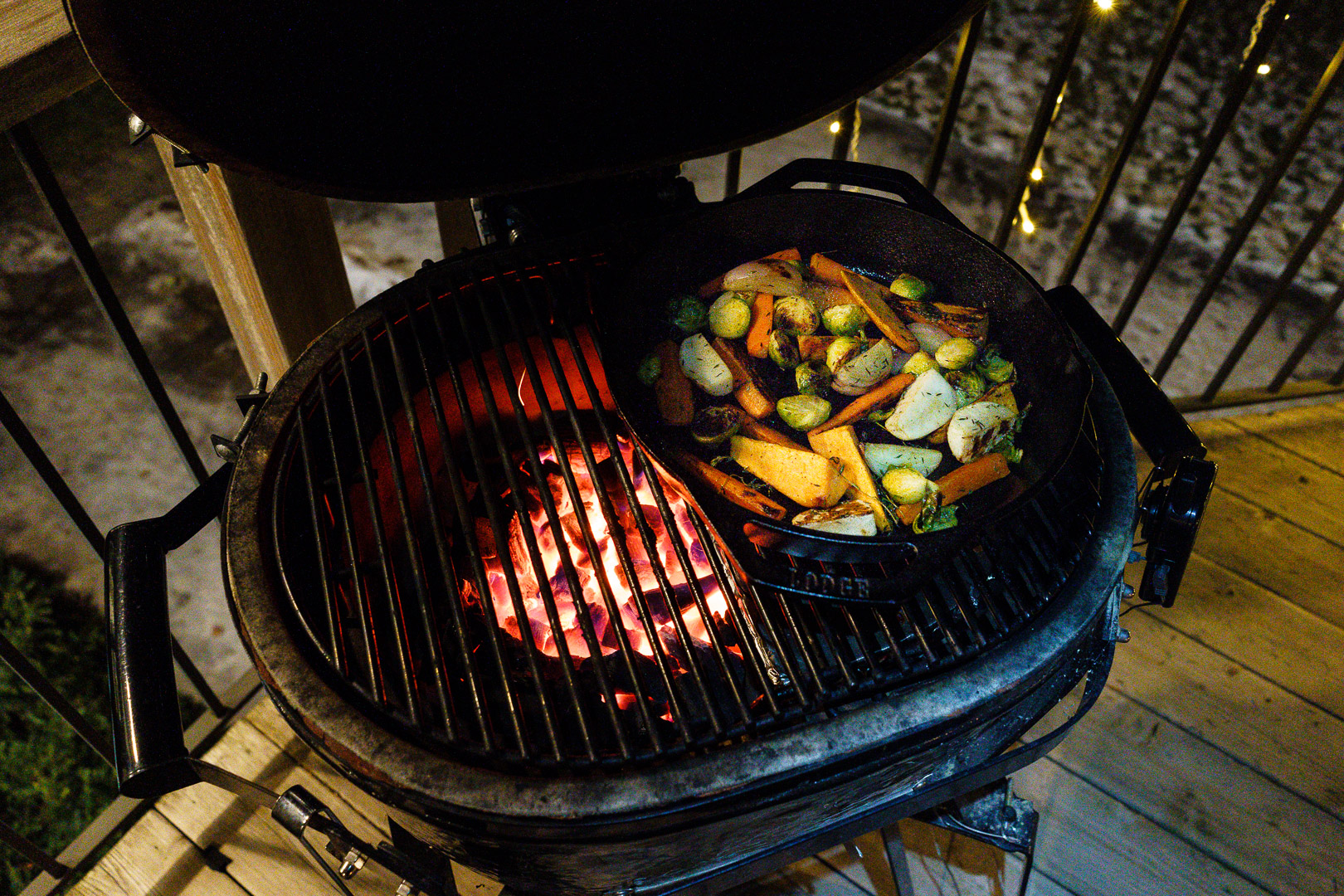 My Primo ceramic grill offers split direct / indirect heat which allows lots of flexibility