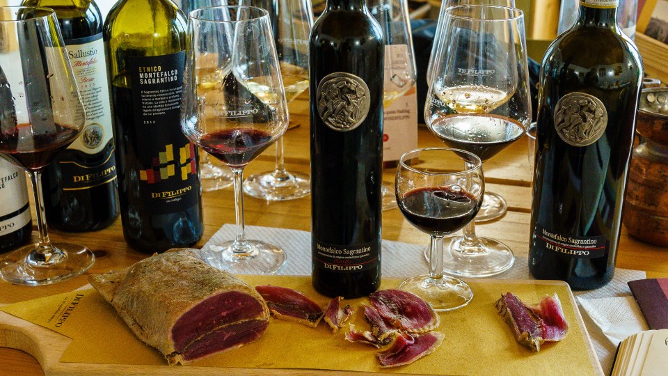 Both dry and sweet Sagrantino seemed natural with rich salumi
