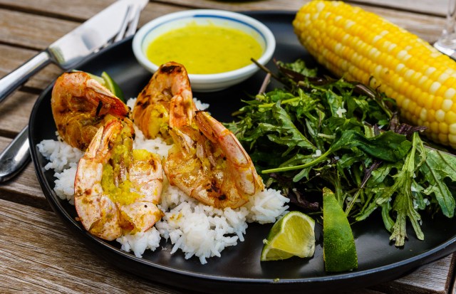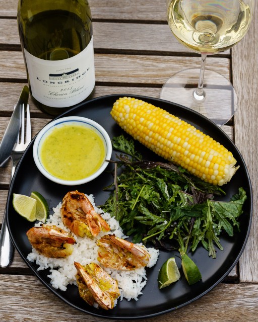 Grilled Shrimp with Turmeric Mojo Sauce and Longridge Chenin Blanc