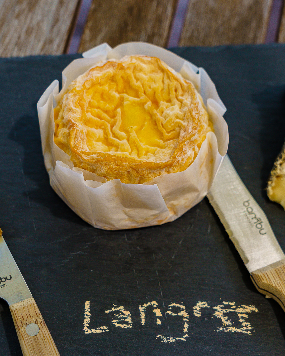 Langres is a French cow’s milk cheese that originated from the plateau of Langres in the region of the Champagne Ardenne, France. It’s a washed rind cheese, think stinky version of brie. Stinky yes, but so luscious.