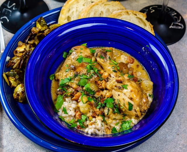 We landed on a chicken with cider and cream recipe from neighboring Normandy.