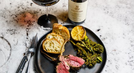 Rack of Lamb in the Snow with GD Vajra Barolo