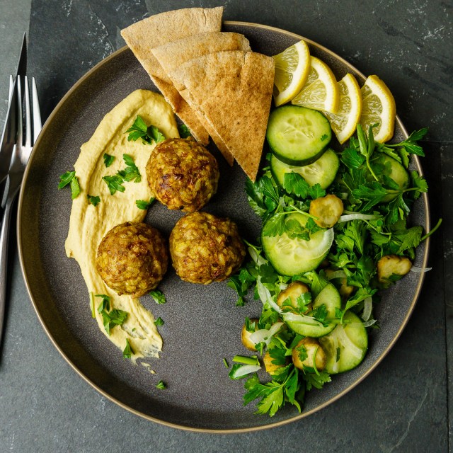 Bon Appetit Chicken and Rice Meatballs with Hummus