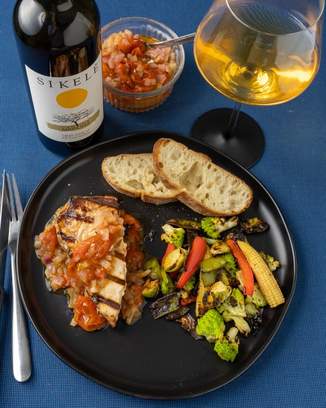 Grilled Swordfish with Tomato Fennel Agrodolce Paired with Cantina Marilina “Sikele”