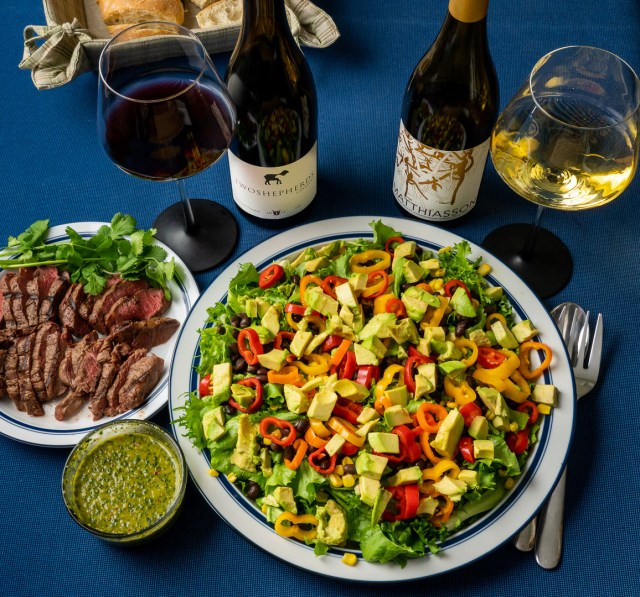 That salad looks so colorful and amazing. Both of those bottles are from wineries with which I’m not familiar. Going to have to check them out.