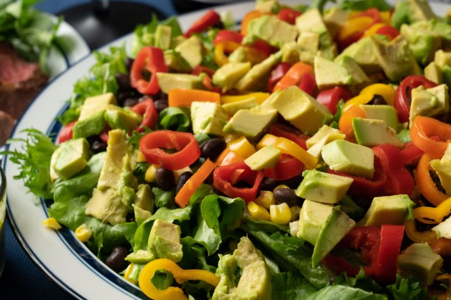 This is Gaby’s Southwestern Cowboy Caviar Salad with Cilantro Dressing, steak on the side.