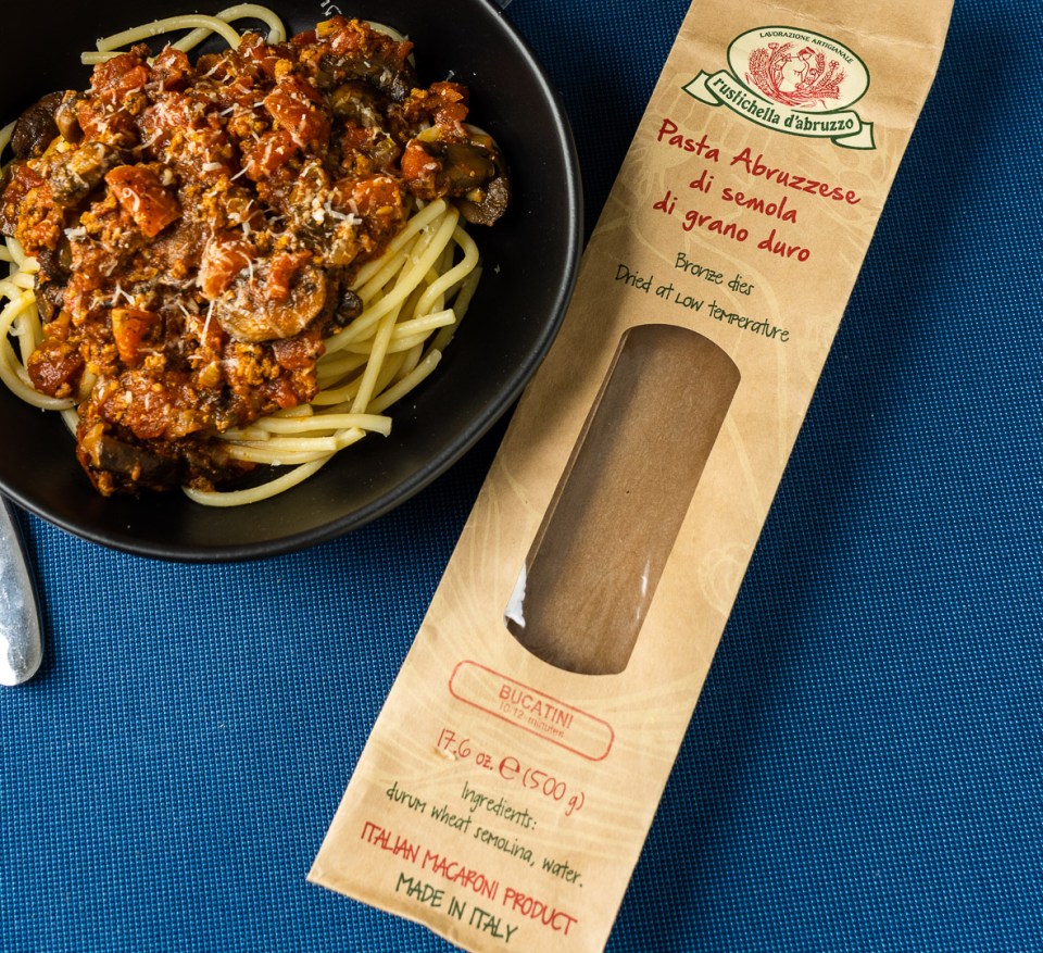 Look for pasta from an Italian source, slowly extruded through brass die. This makes a rougher texture to hold the sauce.