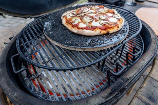 For balanced top and bottom browning, I try to get the pizza positioned high in the dome of the ceramic grill