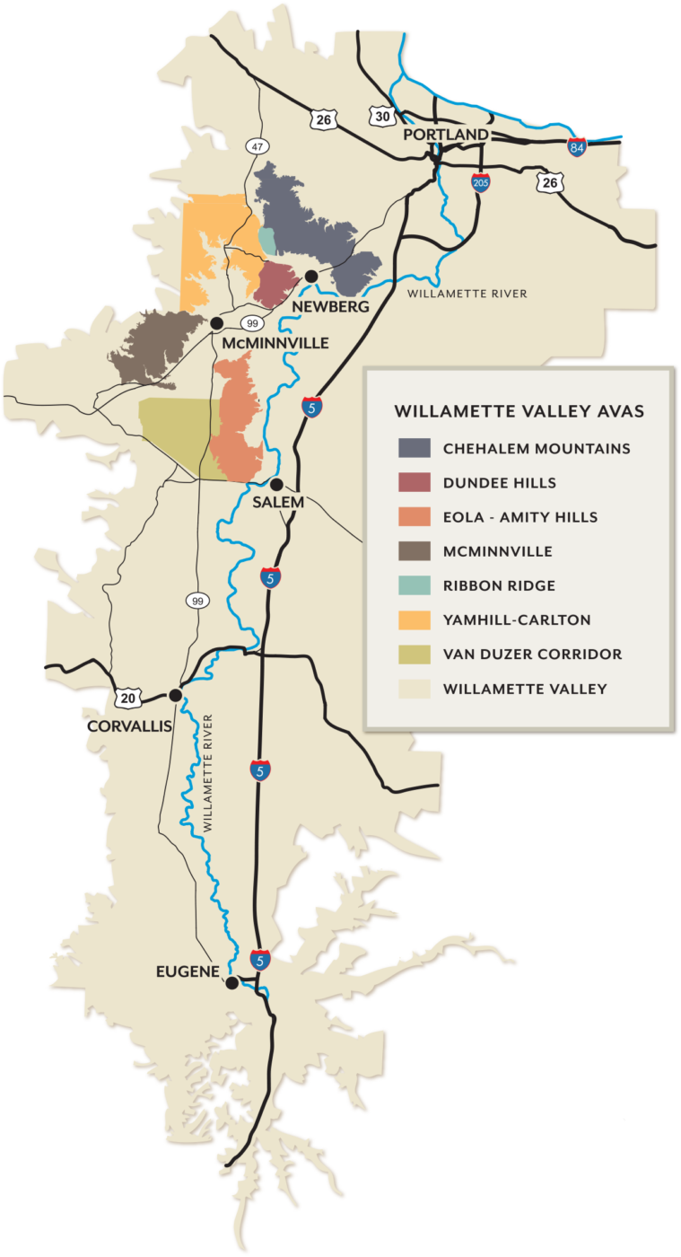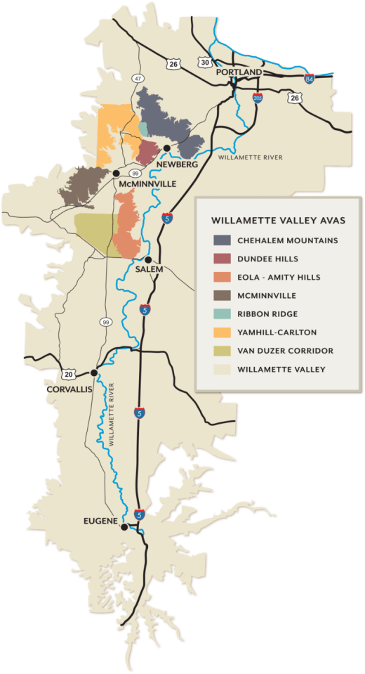 Willamette Valley AVA and sub-AVA’s. image courtesy of willamettewines.com