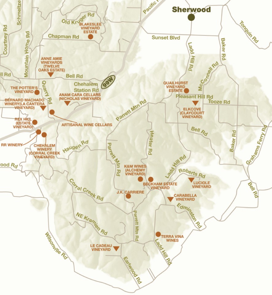 Carabella is located in the southeastern corner of the Chehalem Mountains AVA
