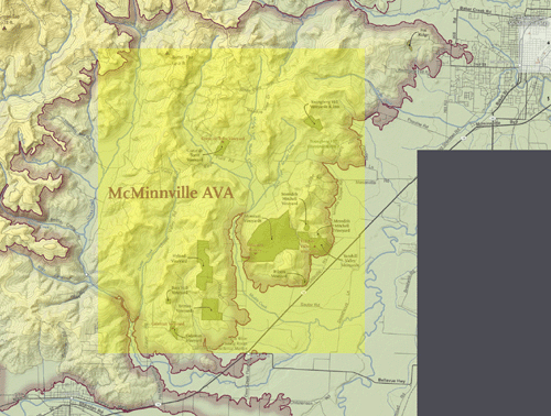 View of the entire McMinnville AVA with the town of McMinnville just to the east.