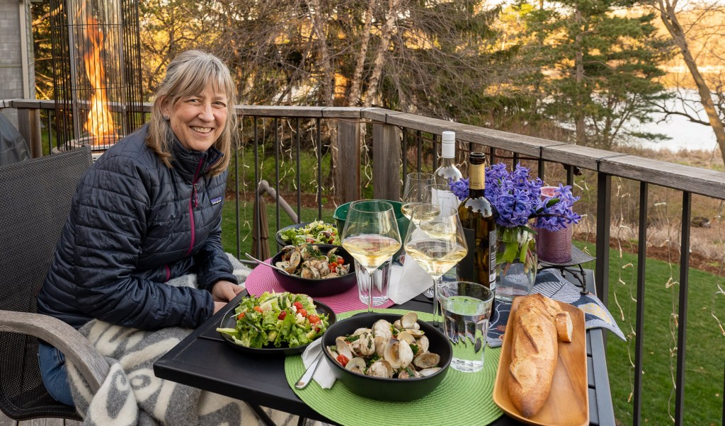 8. Looking at that inviting table and noting Julie’s winter jacket. You two are true Minnesotans – outside as soon as the snow melts! So want those clams with an Albarino.