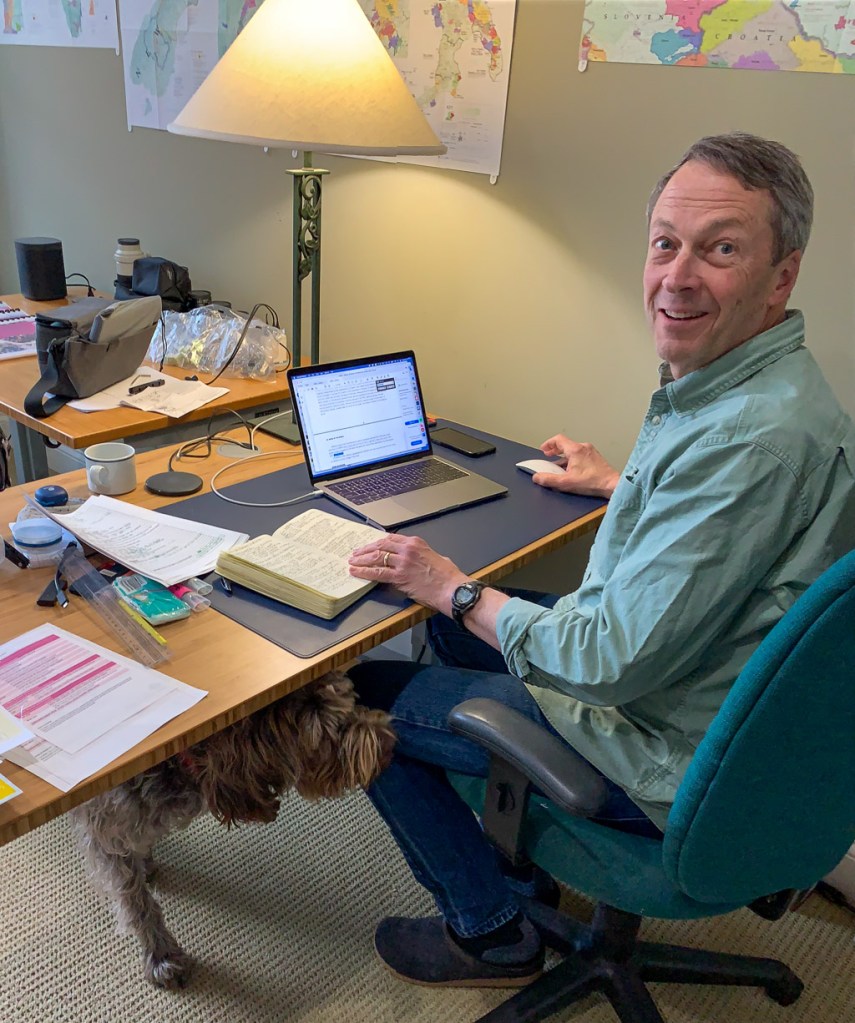 Jeff does come out of his office for two reasons. He takes our dog Otto to the park every morning to run off Otto’s extra energy. He also comes out of the office to accept wine deliveries 3-4 days/week. UPS loves us.