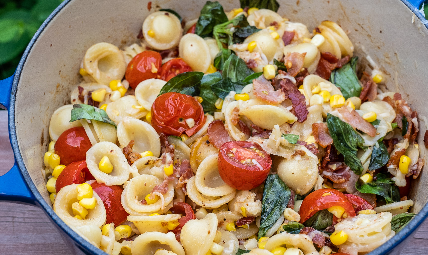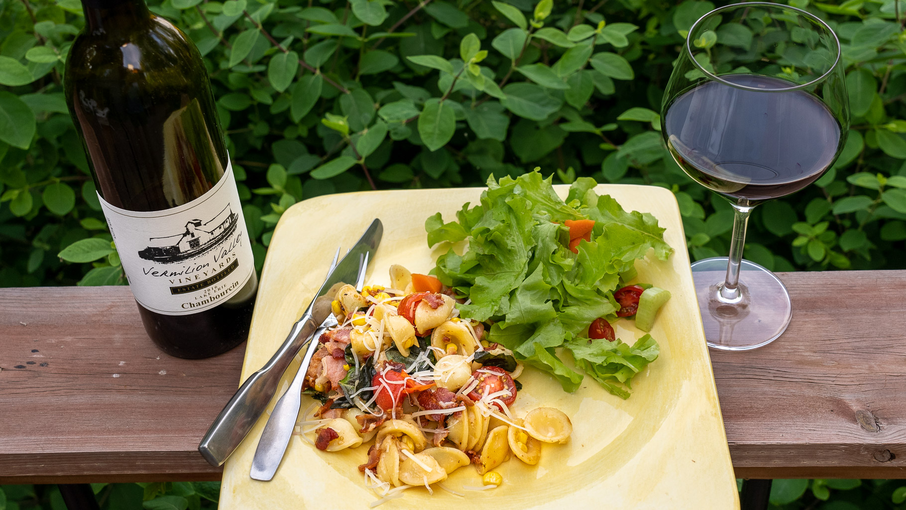 VVV Chambourcin with Corn, Tomato and Bacon Orecchiette