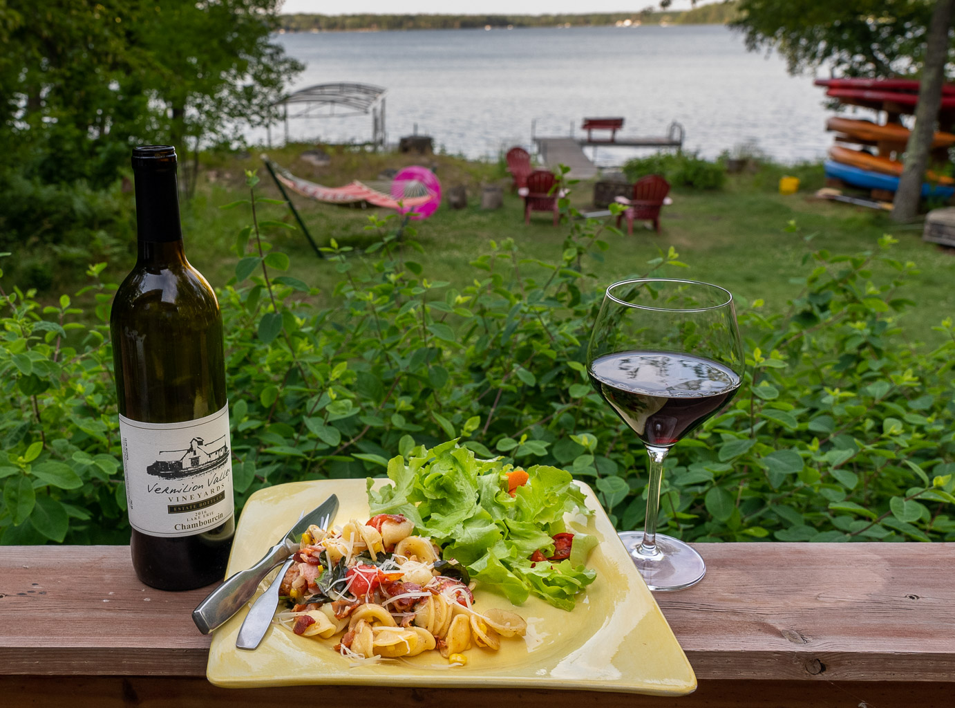 This pairing look absolutely delightful. I’ve tried Chambourcin a few times, but it’s been a while. Clearly time to revisit! Also, those views with the lake in the background look amazing!