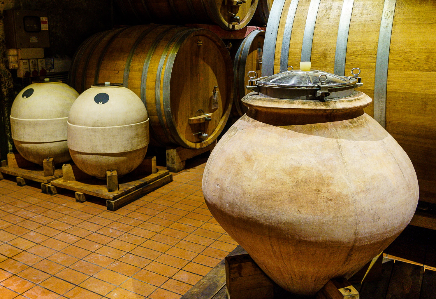 Amphora, amfora, anfora, qvervri, concrete egg, concrete tank are all variations on a theme to allow microscopic amounts of oxygen to enter the container without imparting any flavors from the traditional wood barrel. The ceramic material offers some insulation to minimize temperature changes. Qvervri are designed to be buried in the earth and are only accessed from the top. Amphora (all spellings!) were originally used in transporting wine, and later used in winemaking. Amphora are made to sit on the ground, not buried. Sometimes the inner surface of these vessels is sealed, other times the clay/ceramic material is unsealed, allowing more oxygen transmission. The vessels may be used only for aging the wine, or they may be used for both fermentation and aging. When used for both, the grape skins, seeds and stems may be left in contact for weeks or even months. Concrete tanks of a variety of sizes are typical in many parts of the world for similar reasons, the desire to allow micro-oxygenation with no flavor influence from wood. Relative to the big concrete tanks, amphora allow more oxygen transfer. Amphora are most often used for skin-fermented wines such as red wines and orange wines. Today’s preference for absolute freshness in white wines means they are typically fermented and aged in stainless steel to eliminate any oxygen and to preserve that fruity fresh character.