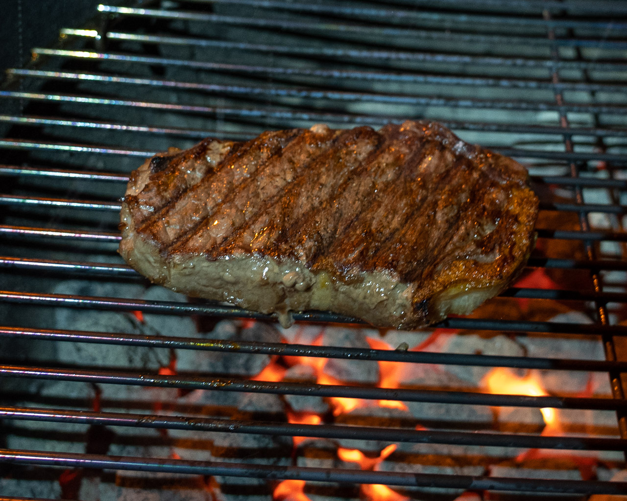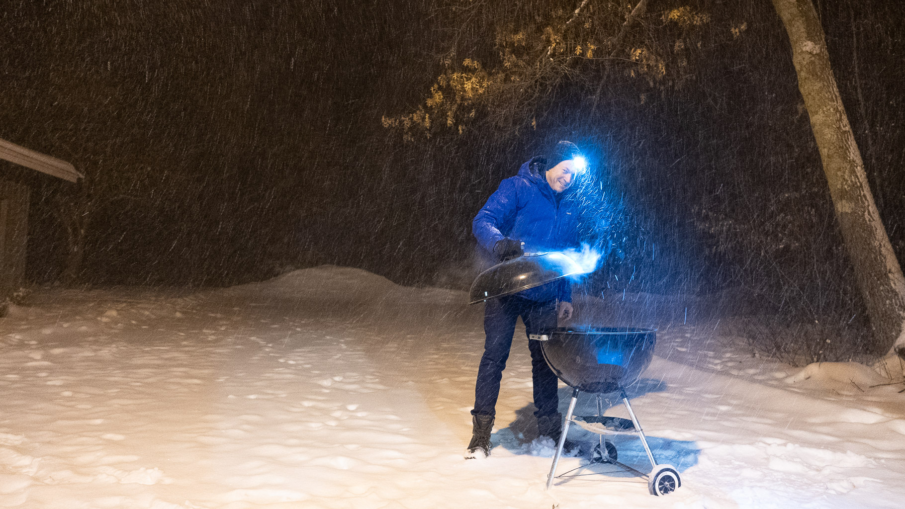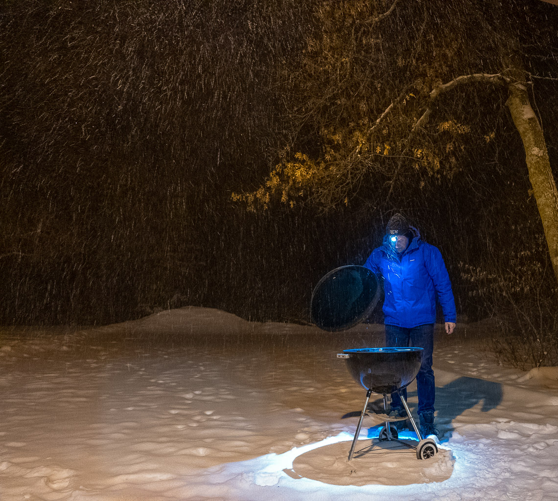 In Minnesota, grilling enthusiasts learn to brave the elements. Otherwise, the grill would only get used for a few months in our all-too-brief summer. Like many activities here, one just learns to be ready for the weather. Weighing a nice steak grilled over charcoal outside vs. in the oven broiler (yuch) was an easy decision!