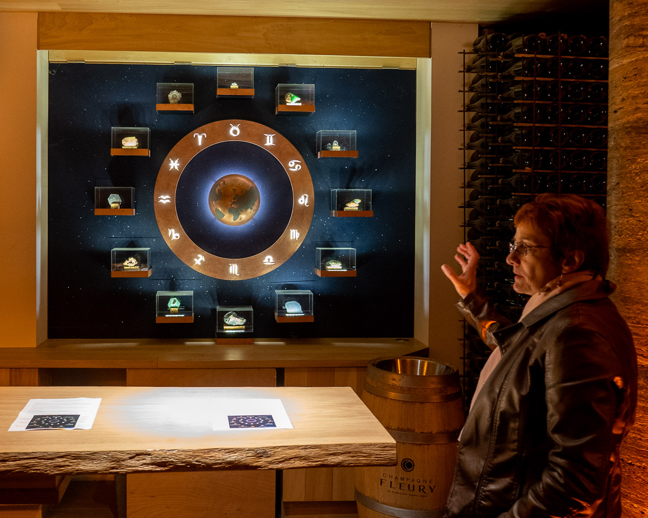 Biodynamics is built on a foundation of organic viticulture, but it encourages a larger view of the farm as a self-sustaining closed system, working with nature rather than conquering it. Biodynamic preparations are used to improve a vineyard’s natural workings, defenses and overall health. In the spirit of more natural approaches, use of farm animals, manual operations and the human hand are preferred. Everywhere else in Champagne, we saw modern grape presses, gyropalette machines for riddling. Champagne Fleury has a modern press, but they prefer the traditional press as it requires more of a human touch. Some vintage wines go through their second fermentation under cork and staple instead of the modern crown cap, and some are riddled by hand. All these touches express the biodynamic spirit.