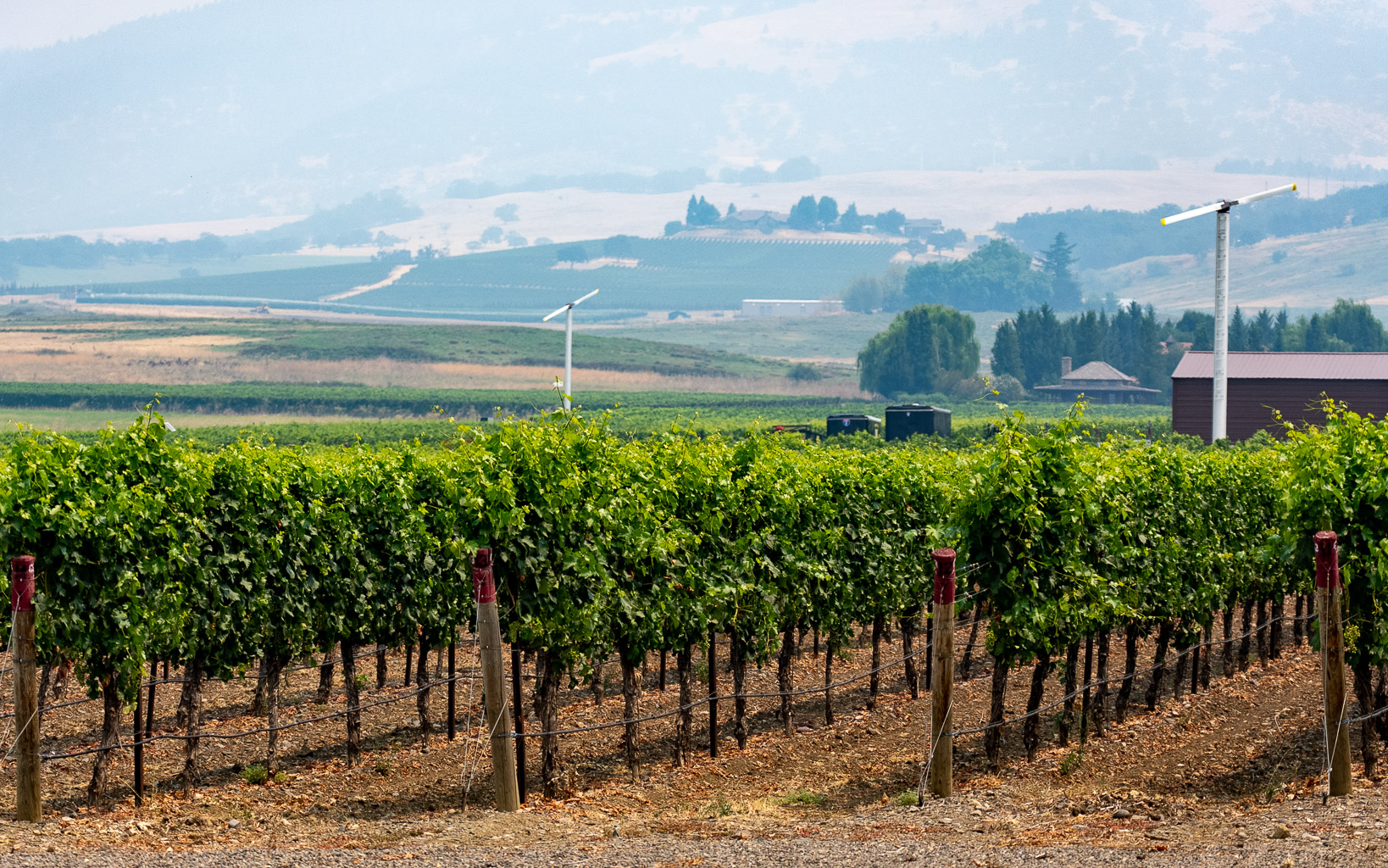 While not certified to any formal standard, Ross uses his extensive farming experience to guide their sustainable approach in the vineyard. Pest control is handled by encouraging natural predators like the winery’s namesake hawks, beneficial insects, and others. Water conservation is key. For instance frost control in the spring is performed by wind machines in the vineyard rather than sprinklers. They compost everything that comes out of the vineyard.