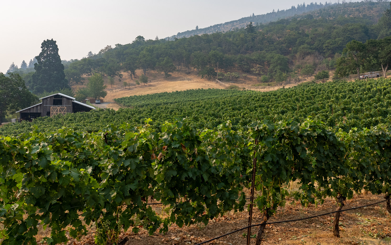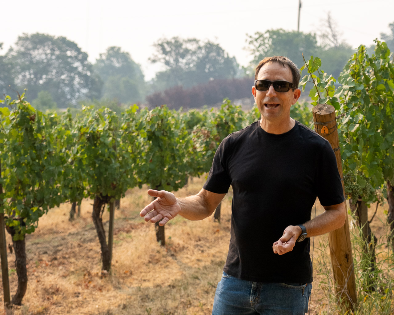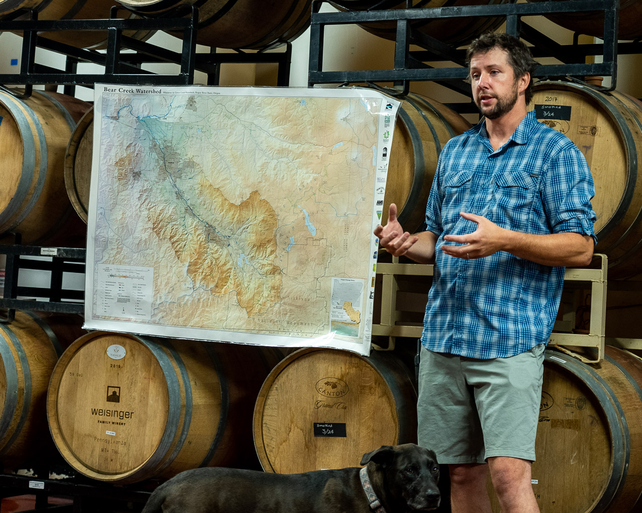 The Weisinger Family Winery was started back in 1978 when John Weisinger purchased an old 1888 farm in the Bear Creek Valley, just south of Ashland Oregon. John’s son, Eric, now runs the winery and led our tour. At 2000 ft altitude, the Bear Creek Valley gets plenty of daytime sun and heat, but cools beautifully at night. This climate supports a wide variety of grapes. The Weisinger family grows Gewurztraminer (their original vines), Pinot Noir and Tempranillo on their farm. They also source grapes from other vineyards within 5 miles of the farm. They are responsible for the farming at about 85% of these properties. As we stood in the now 40+ year old dry-farmed Gewurztraminer vines, Eric explained how, as a kid, he hated being forced to help plant vines; vines he now treasures! Eric took over winemaking at the winery in 1997, and now runs the entire business for their 3000 case production. Eric explained they are currently converting to organic viticulture and have eliminated use of pesticides like glyphosphate. Grapes are all hand-harvested, allowing whole cluster fermentation where desired.