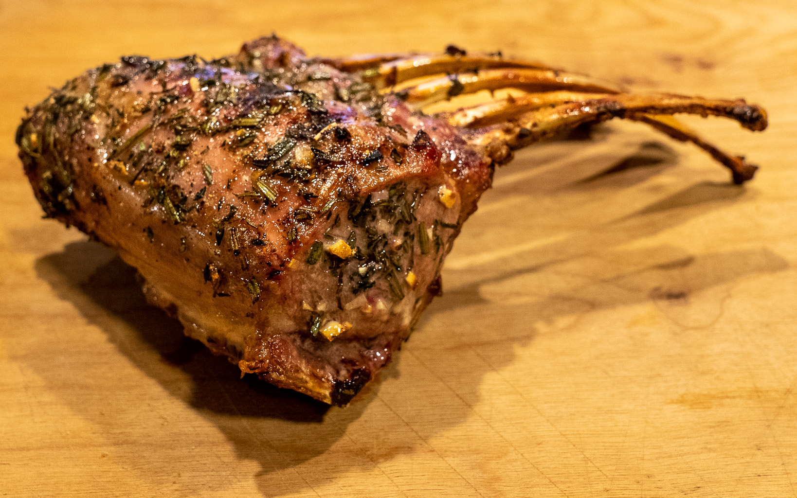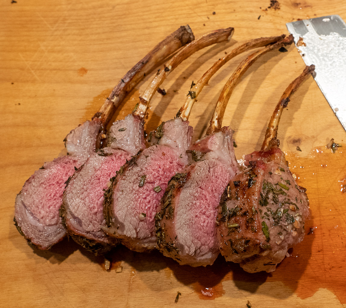 After chores in the rain, I could take comfort in a favorite meal with a half-rack of lamb on the grill served with my all-around favorite lamb pairing: Syrah. Lamb pairs well with a wide variety of red wines, but I find that slightly gamey note in lamb echoes the meaty/gamey note often found in a nice Syrah. I keep the spices simple with a coating of minced garlic, rosemary and thyme. Cooked at low heat on our Weber gas grill, I just watch the internal temperature of the lamb and stop at 120°F. I rounded out the meal with a slaw mix with mustard vinaigrette and basmati rice. A nice reward for those rainy, cold chores!