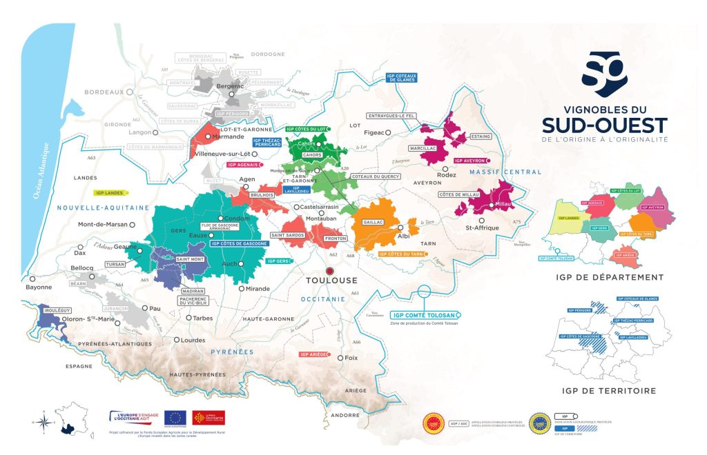 Sud-Ouest is the home of a wide variety of delicious wines. (map courtesy of http://www.vignobles-sudouest.fr/us/)