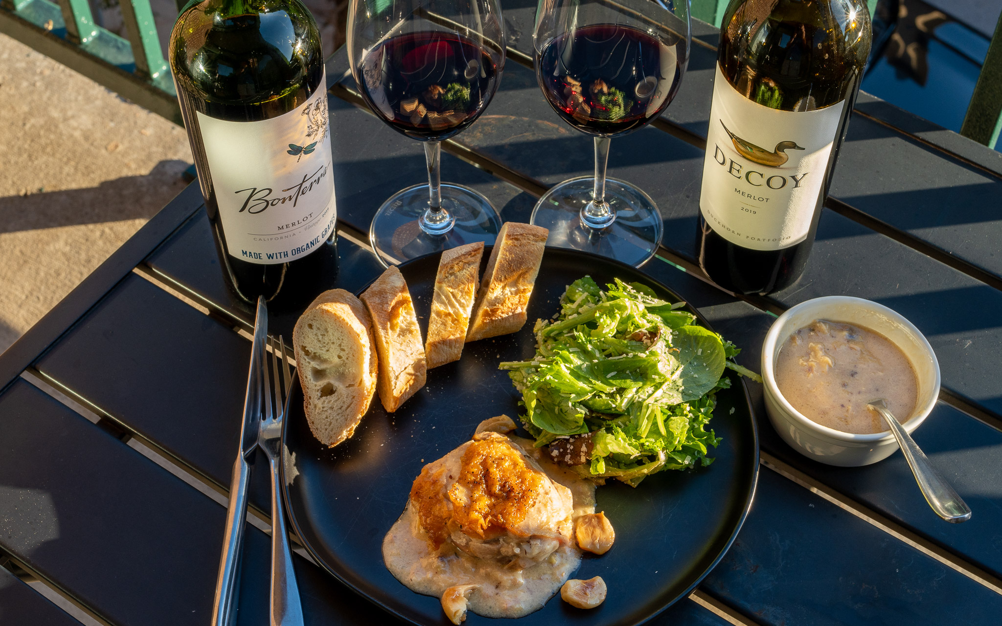Decoy and Bonterra Merlots Paired with Chicken and 40 Cloves of Garlic